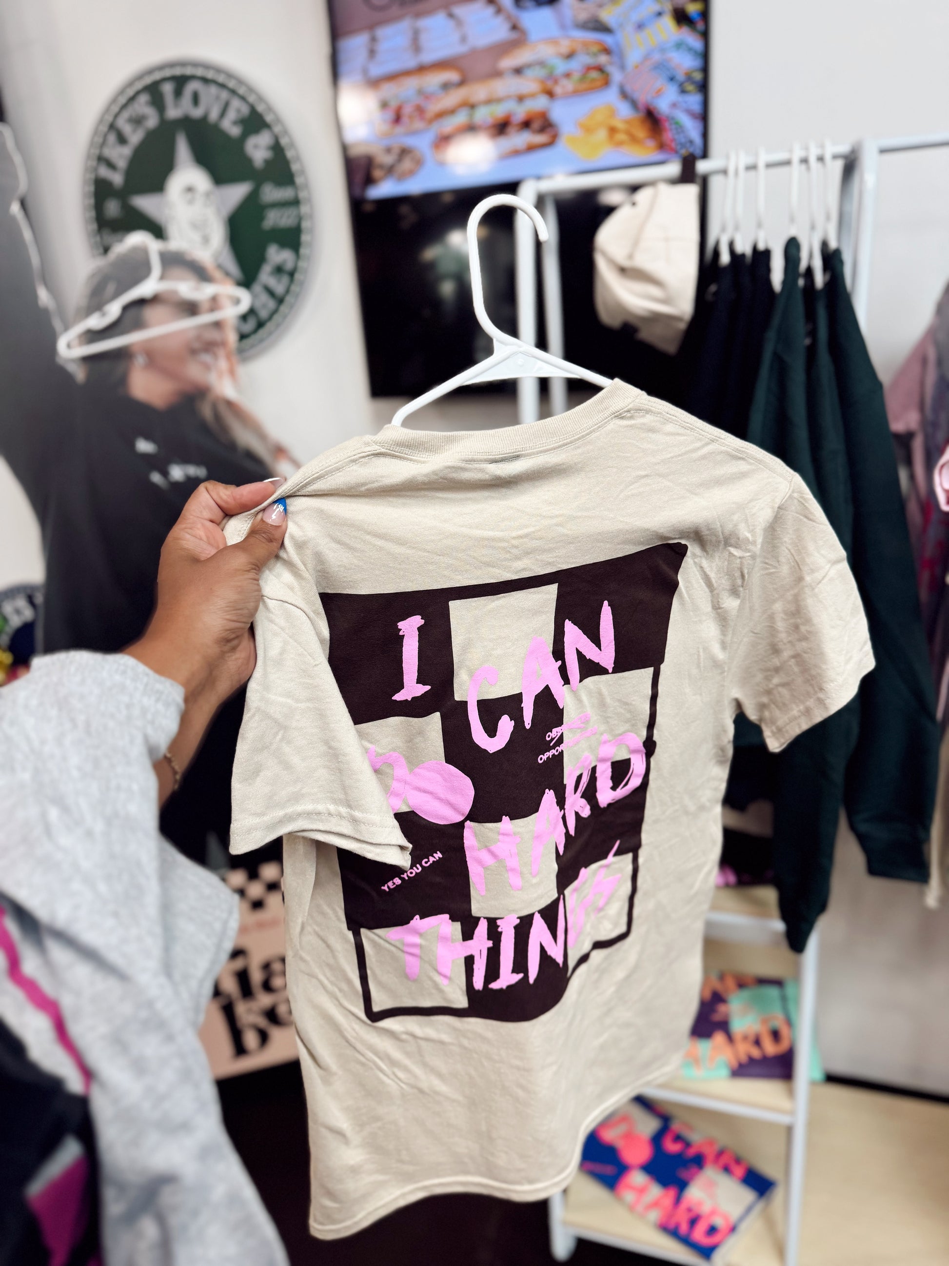 PREORDER Cream, Brown + Pink "I Can Do Hard Things" Tee