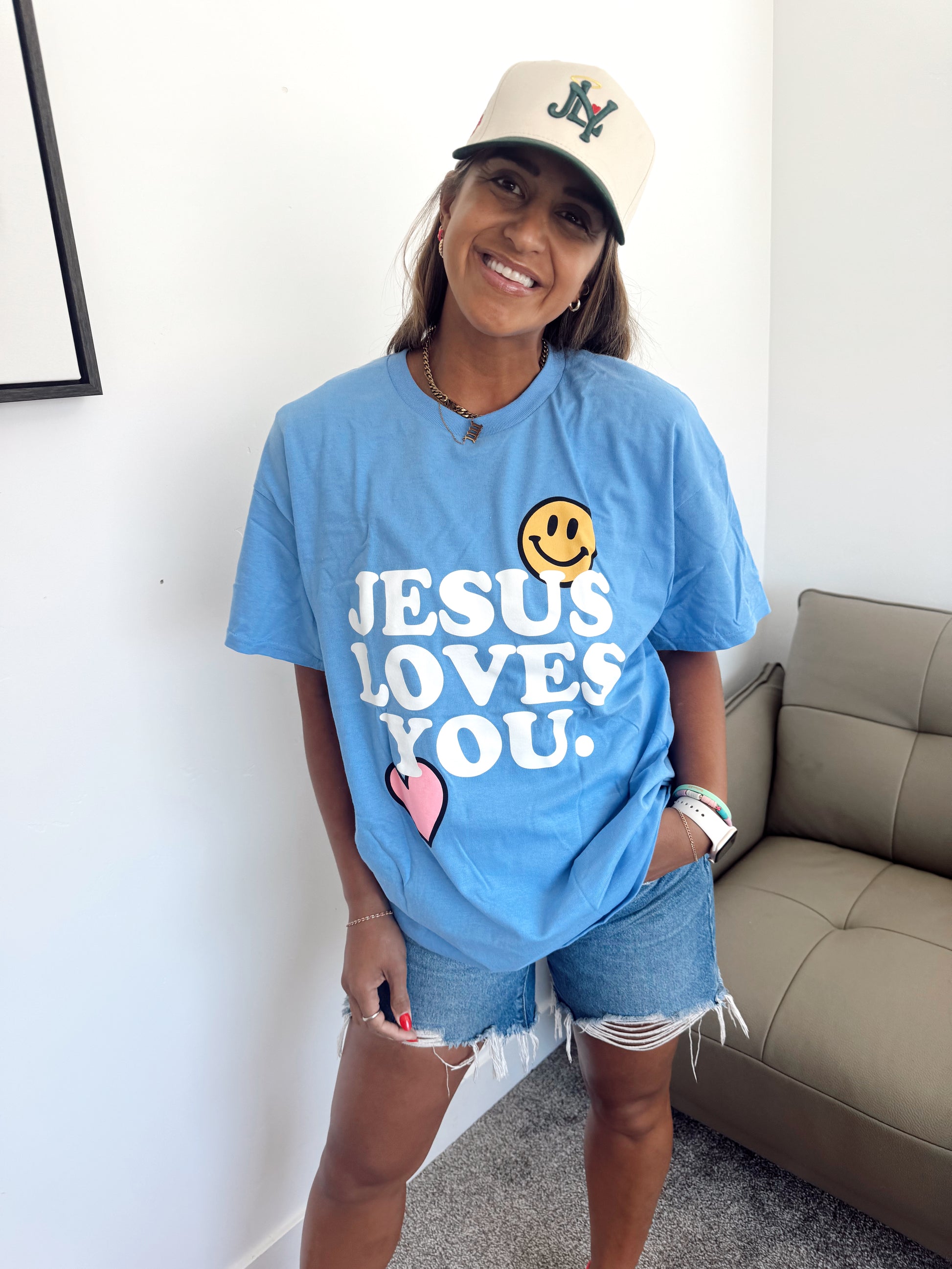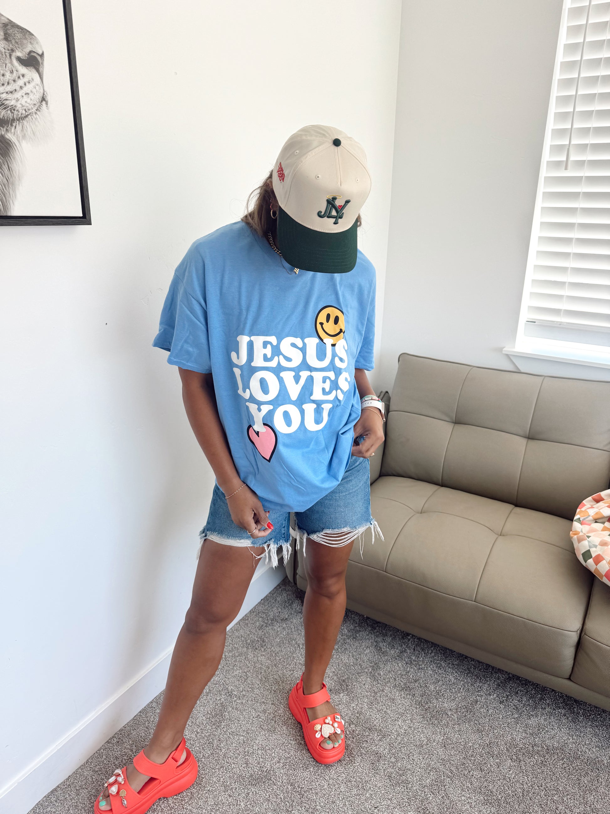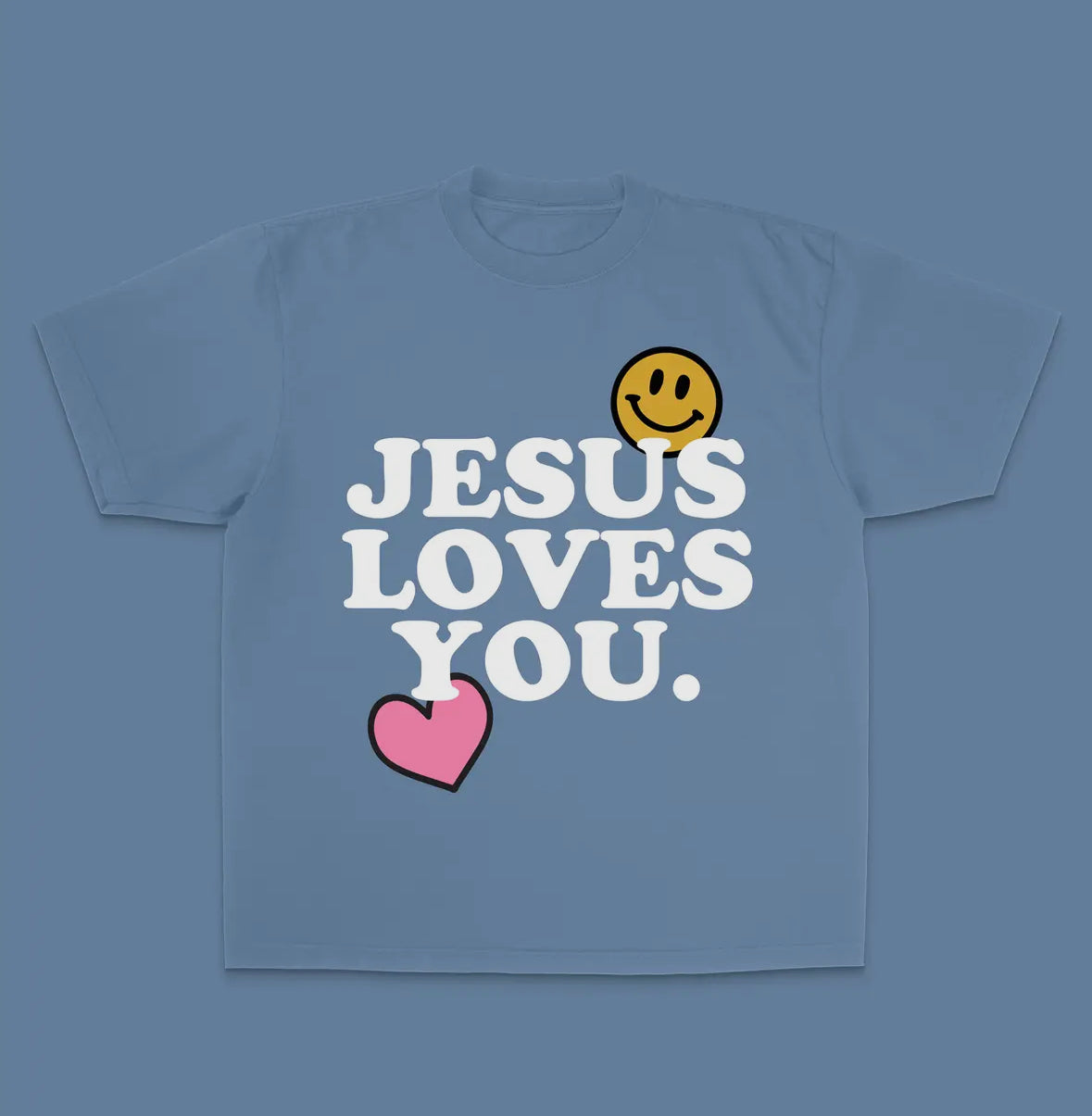 Our NEW || 'Smile. Jesus Loves You.' Tee from Jesus Loves You Company is more than just a shirt. It's a conversation starter, a testament of faith, and a comfy garment all in one. Designed for kids, this screen-printed T-shirt carries the heart of Jesus. It's not just about wearing His name, but also spreading His love, sparking relationships, and building a global community. Get your little one this tee and let them wear their faith with a smile!