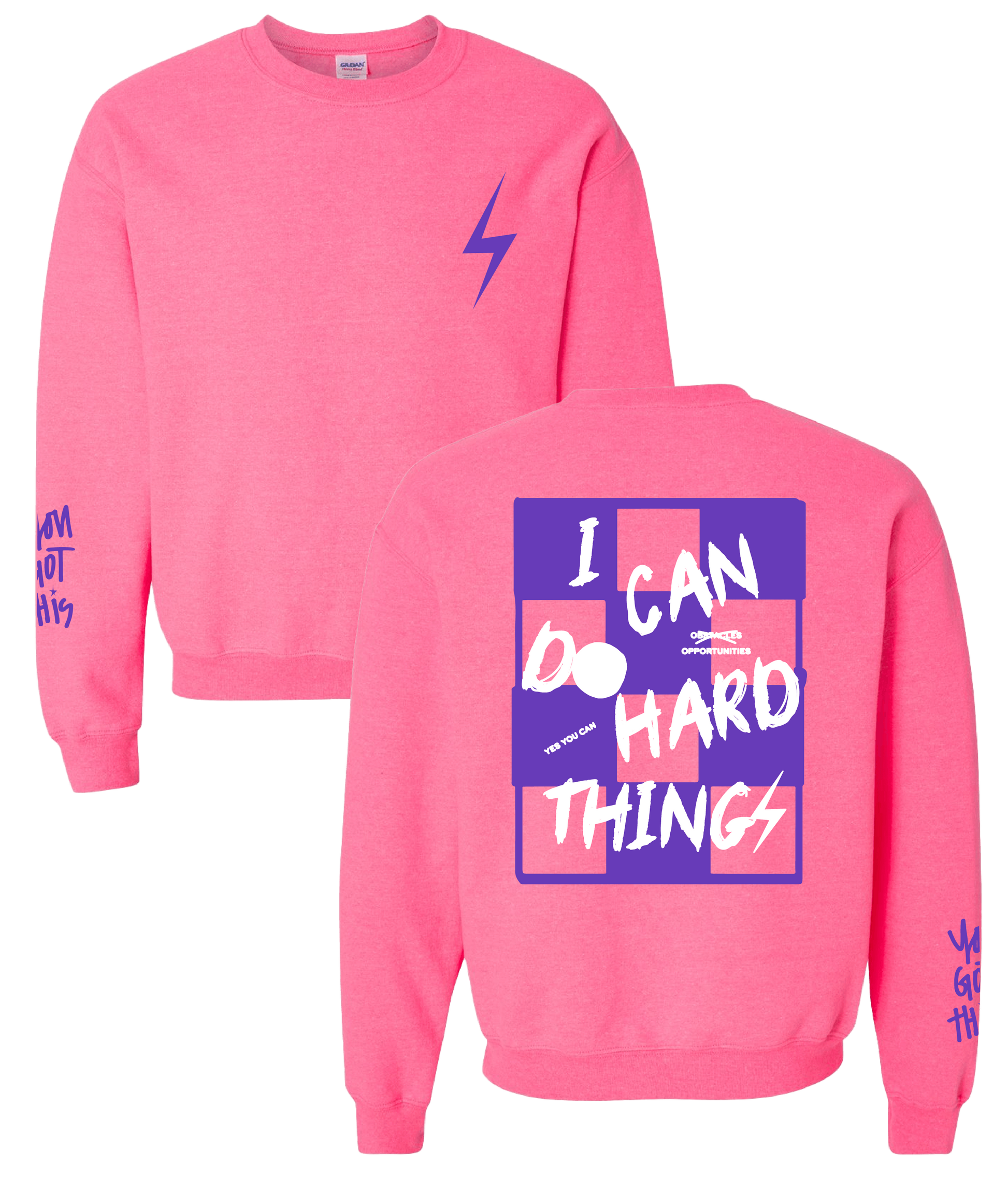 PREORDER Safety Pink + Purple/White "I Can Do Hard Things" Sweatshirt