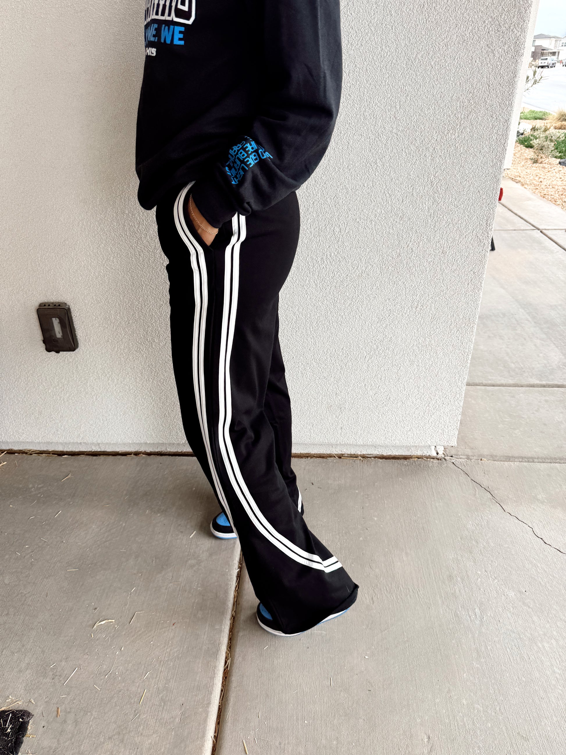 SOLID COTTON SIDE STRIPES WIDE LEG PANTS