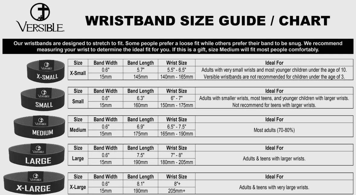 Our wristbands are soft, stretchy, reversible and waterproof! With mulitple styles and 5 sizes to choose from, it's easy to find a Tap To Pray wristband that's right for you!