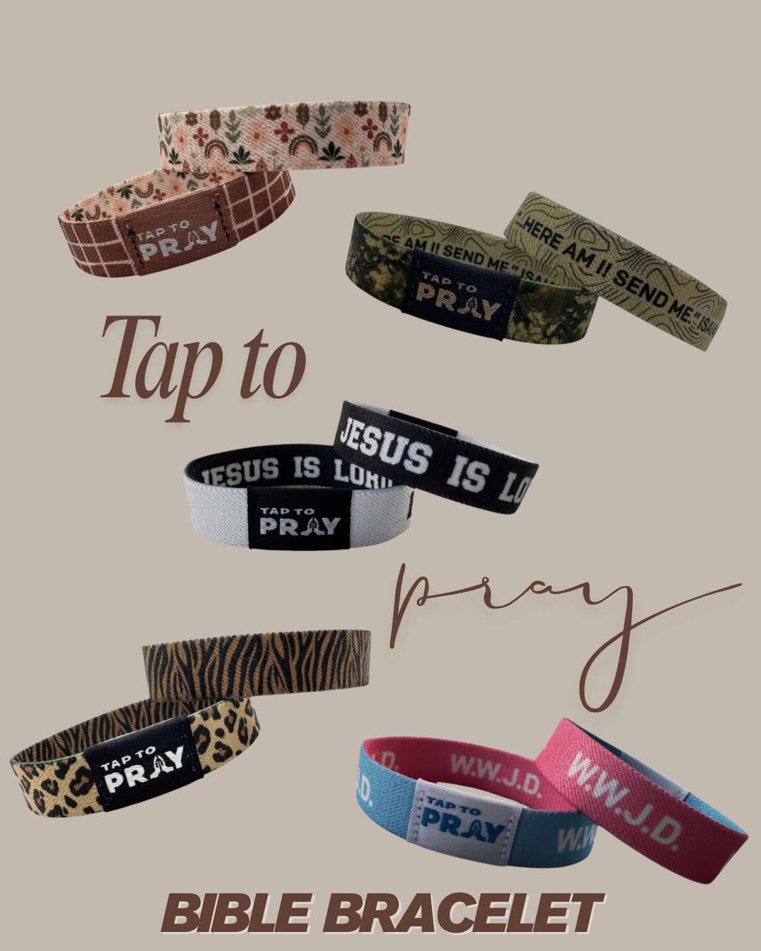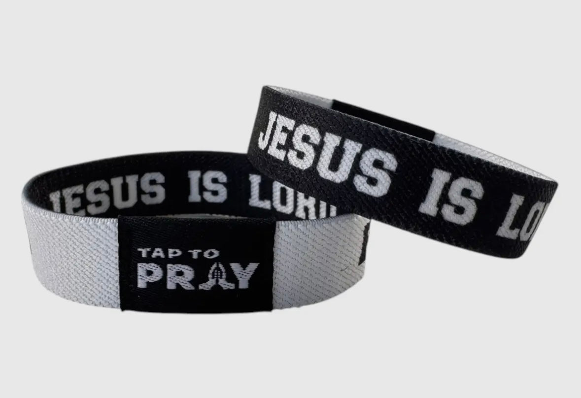 Tap To Pray wristbands. Simply tap the patch with your smartphone to receive a new Bible verse and prayer every day. Tap To Pray works with most smartphones.